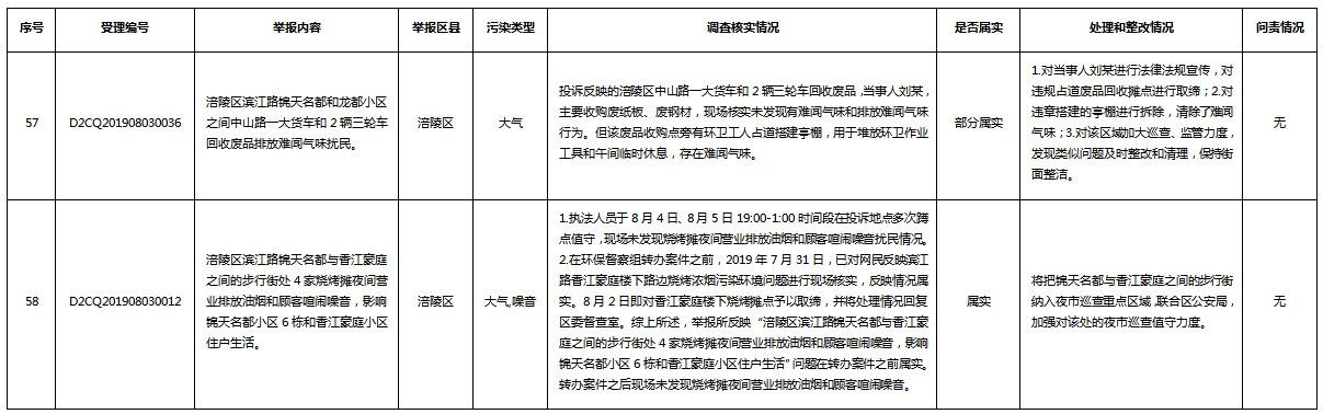 2019年8月3日,涪陵区收到中央第四生态环境保护督察组交办的生态环境问题 2件。现将处理和整改结果向社会公开。