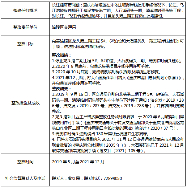 重庆市生态环境保护督察反馈交办问题整改销号情况公示表(长江经济带问题)