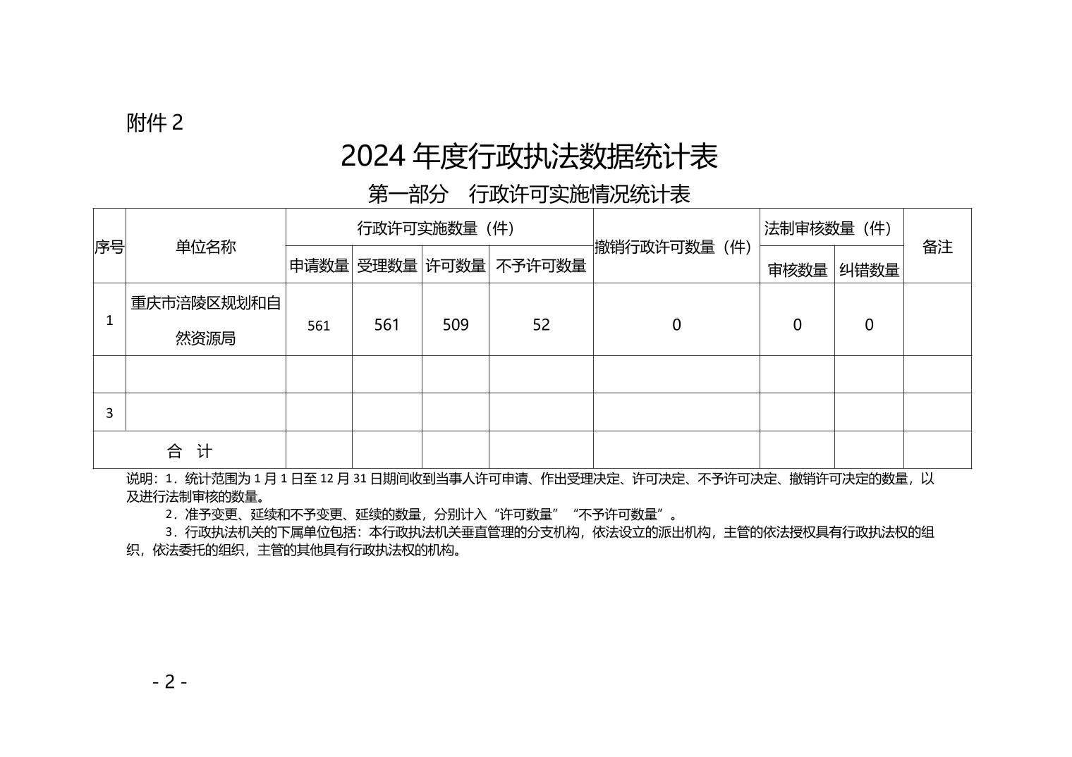 涪陵区规划和自然资源局2024年度行政执法数据公示