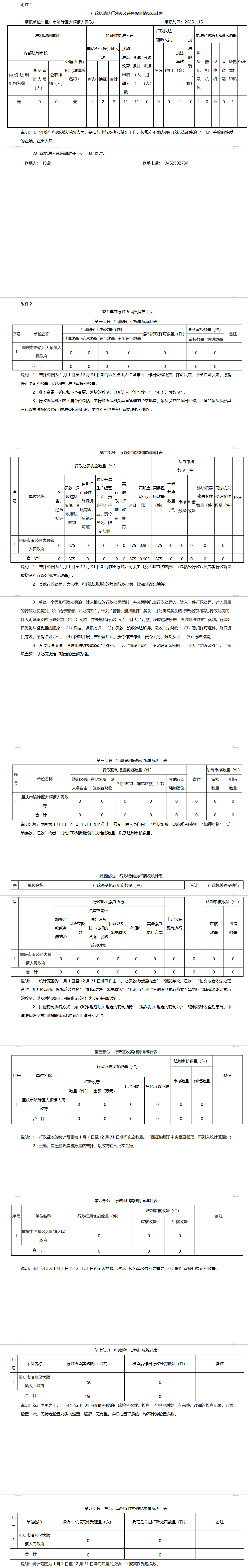 涪陵区大顺镇2024年度行政执法数据公示