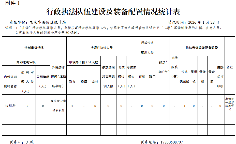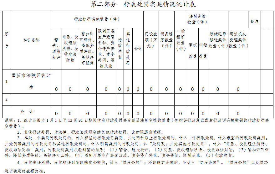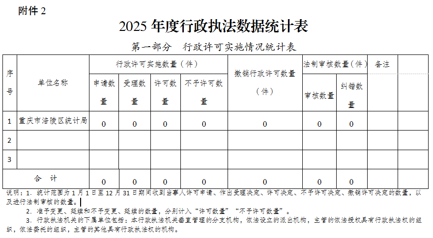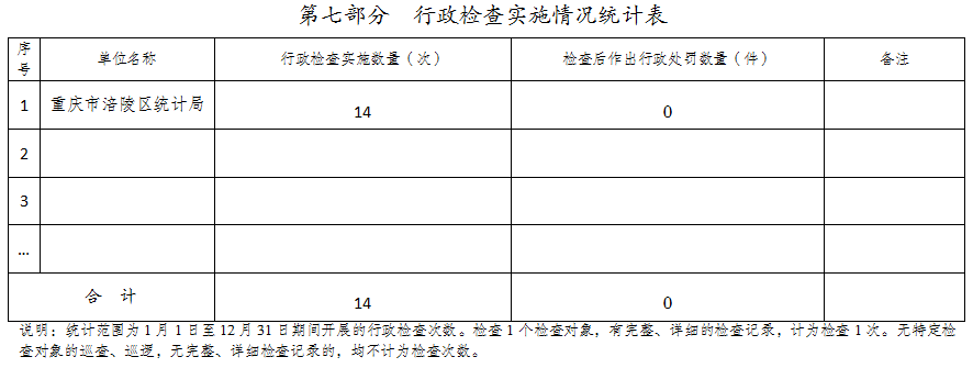 涪陵区统计局2025年度行政执法数据公示