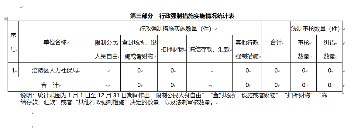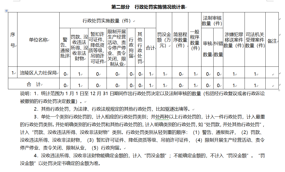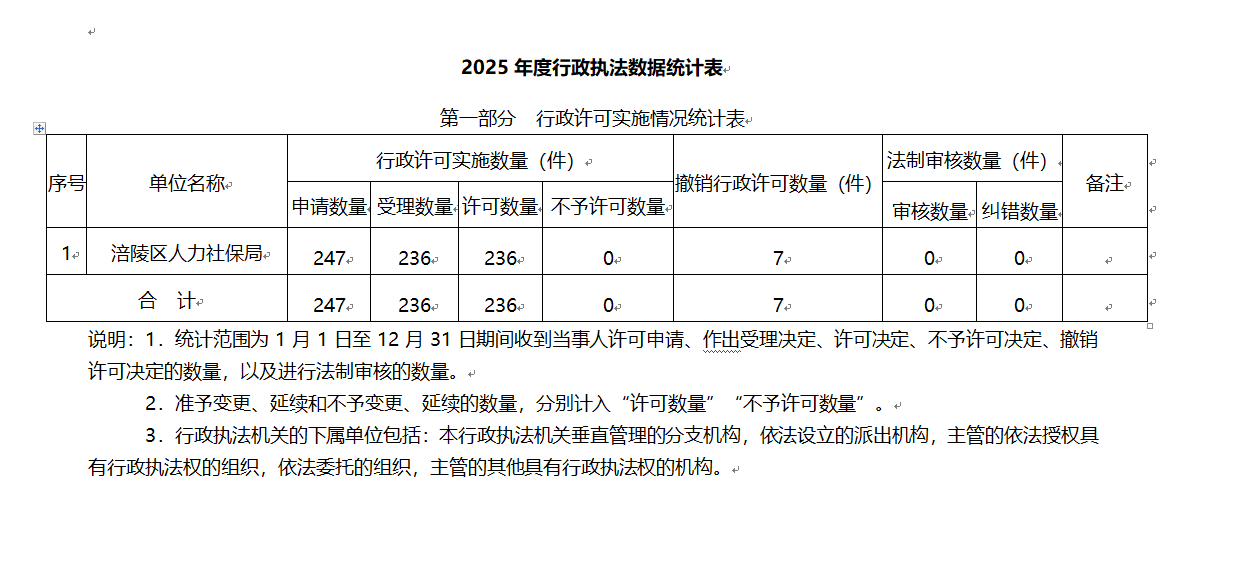 涪陵区人力资源和社会保障局2025年度行政执法数据公示