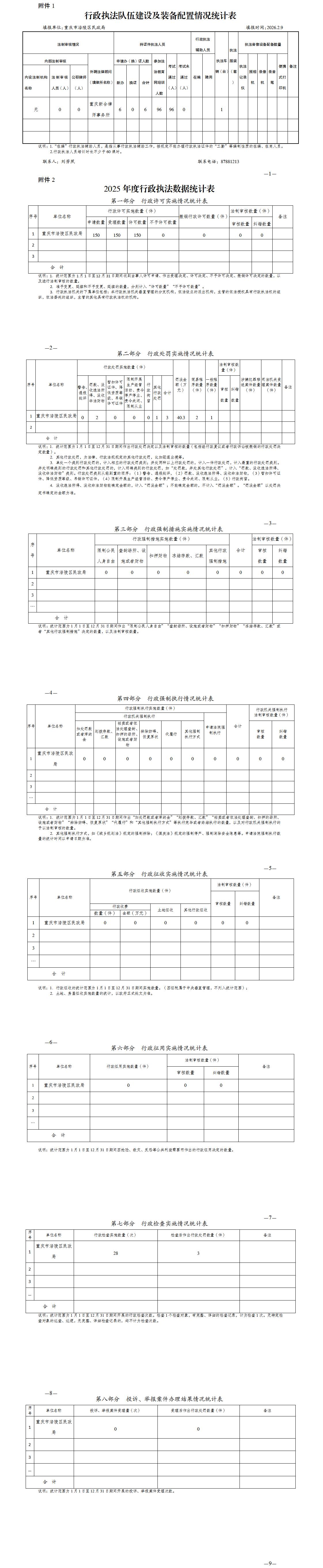 重庆市涪陵区民政局2025年行政执法数据统计表