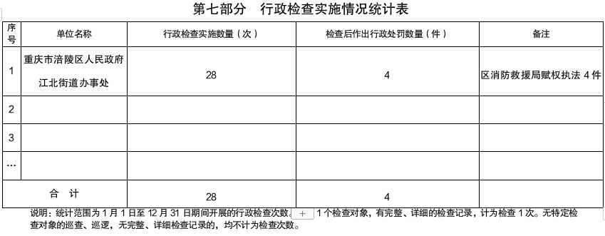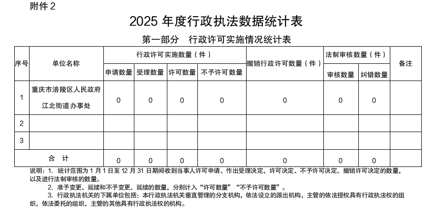 涪陵区江北街道办事处2025年度行政执法数据公示