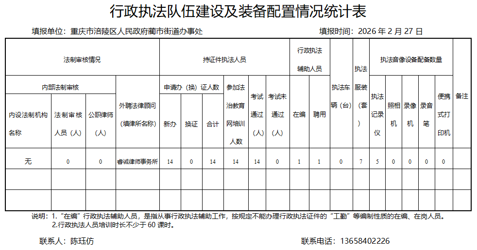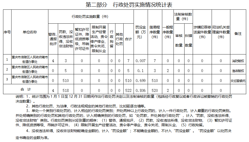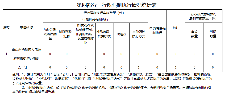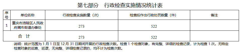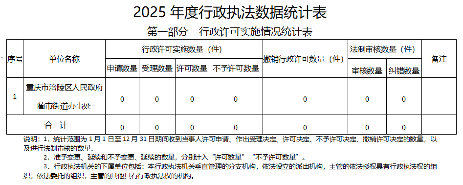 涪陵区蔺市街道办事处2025年度行政执法数据公示