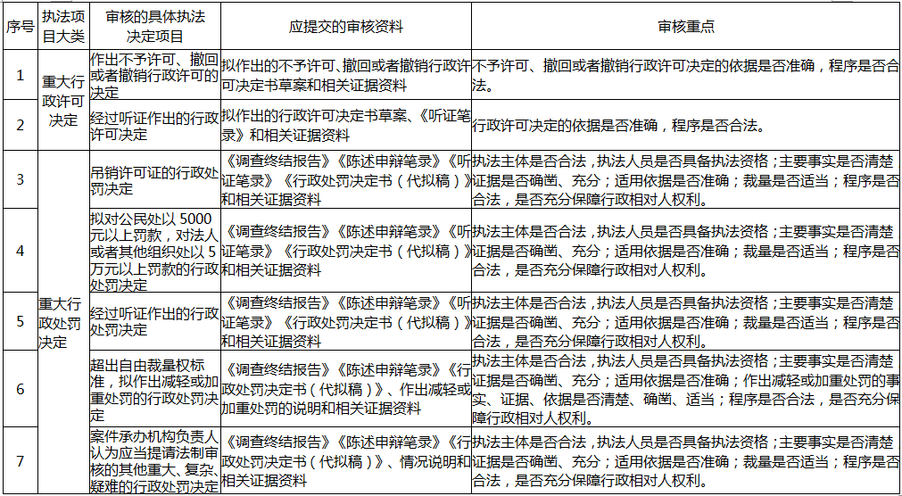 涉及目录清单事项内容的,各承办科室和局属单位在报请局领导审批前或者提请集体讨论作出重大行政执法决定前,应当将拟作出的行政执法决定、承办部门处理意见及其理由和依据等相关材料报送局政策法规科审核。