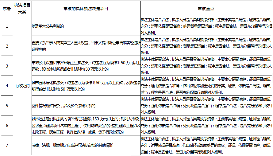 重庆市涪陵区城市管理局重大执法决定法制审核目录清单