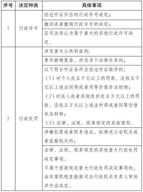 重庆市涪陵区司法局重大执法决定法制审核目录清单