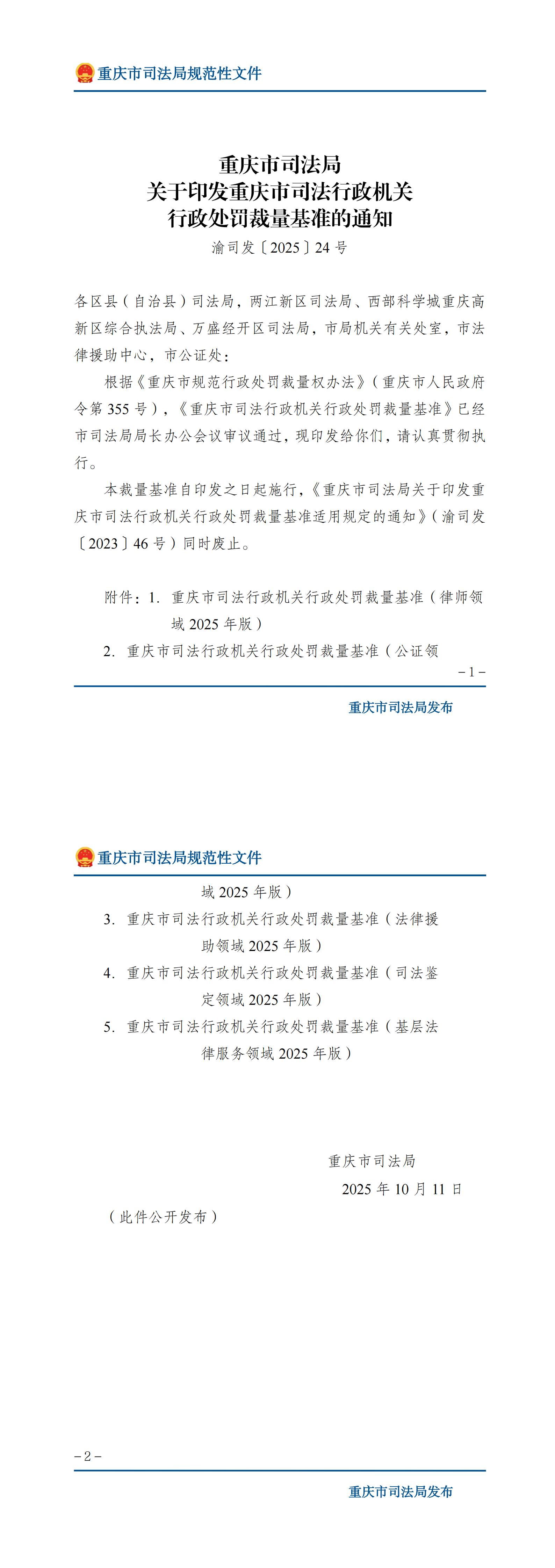 重庆市司法局关于印发重庆市司法行政机关行政处罚裁量基准的通知