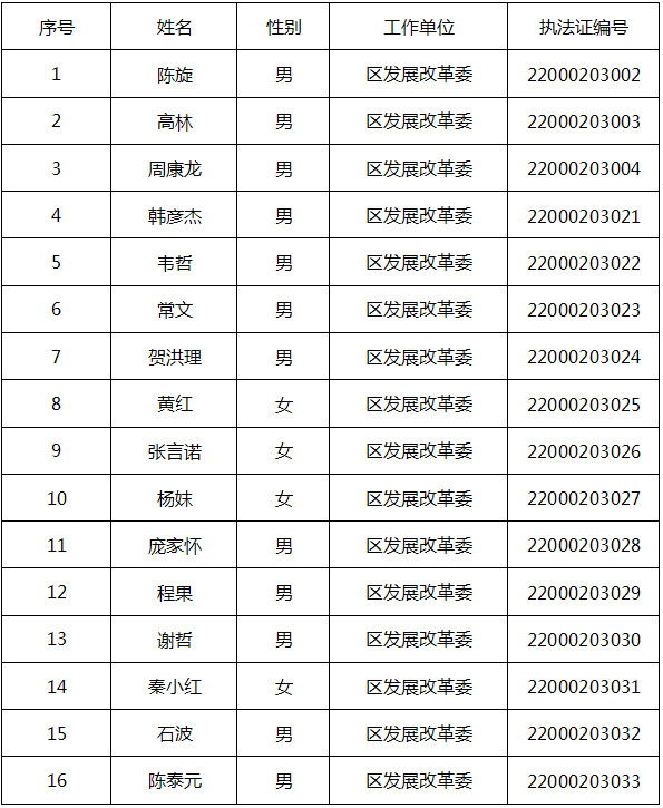 重庆市涪陵区发展和改革委员会 行政执法人员名单