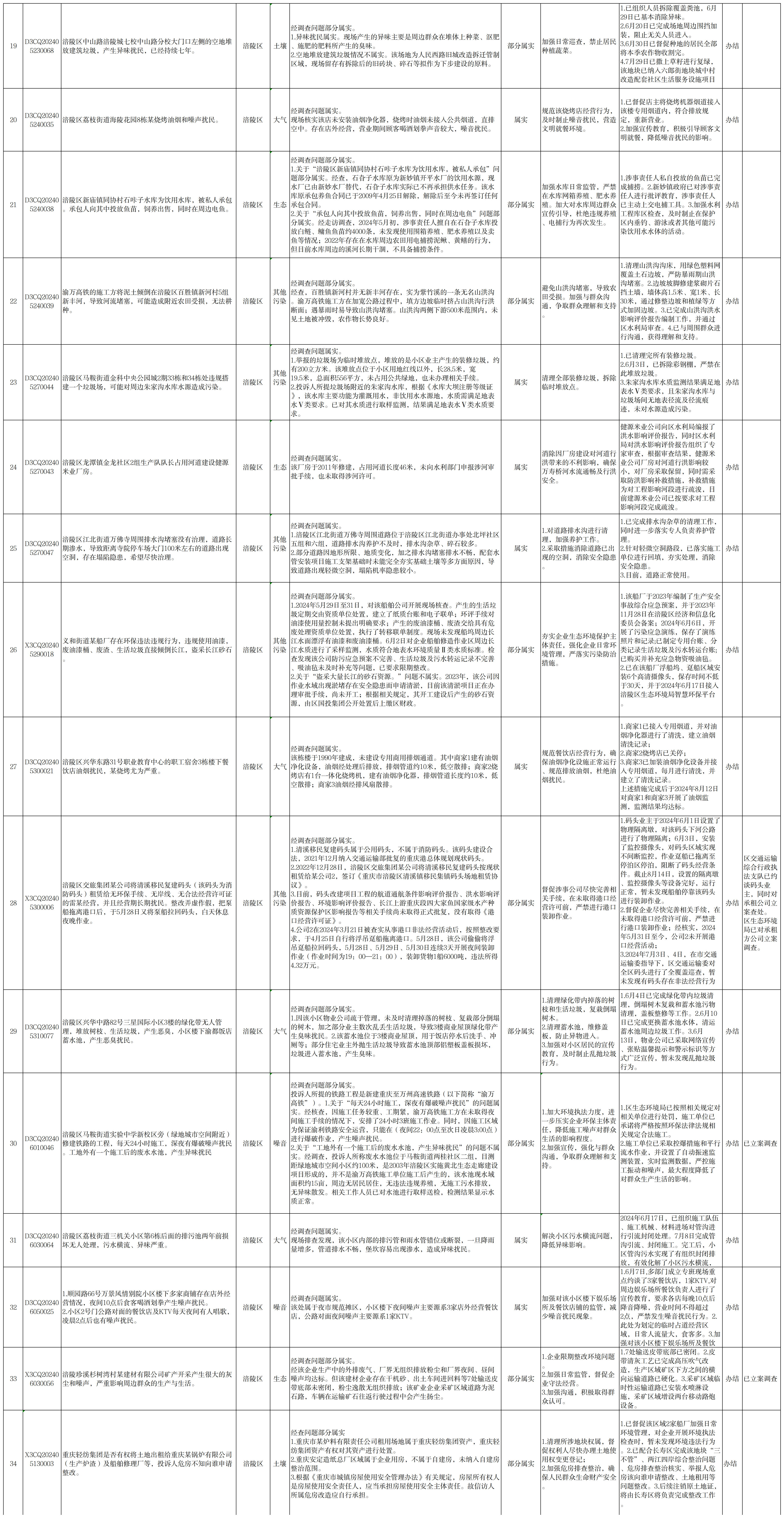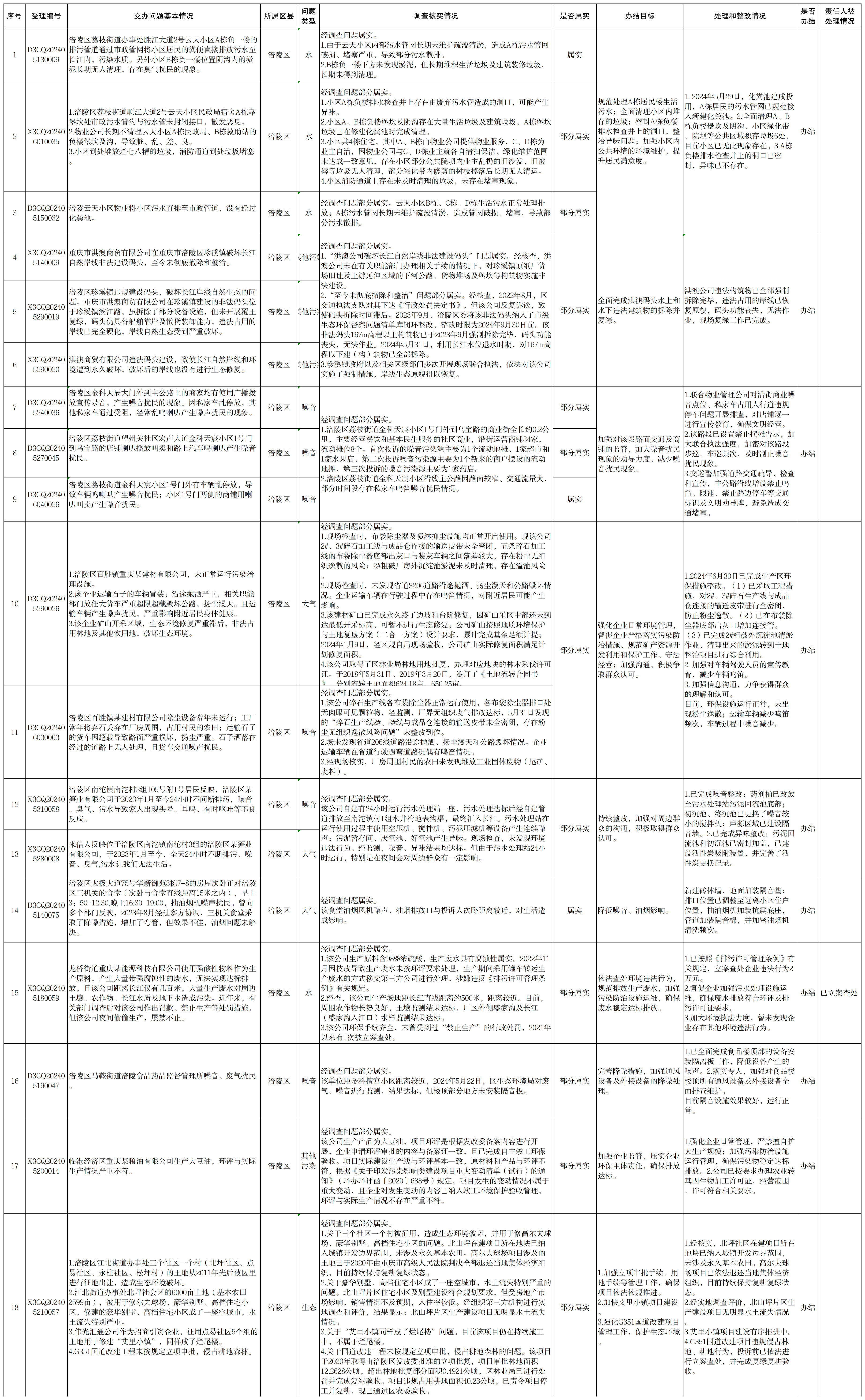 中央生态环境保护督察组群众信访举报办理情况公开表(第一批)