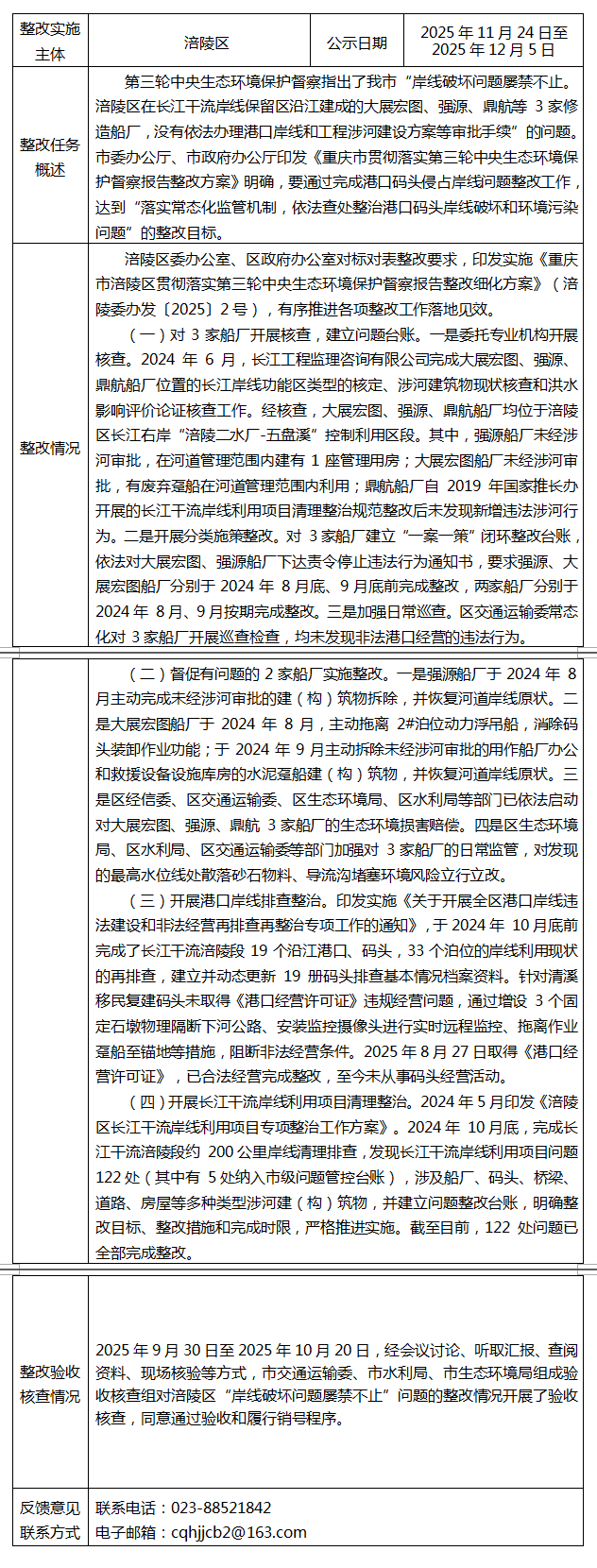 中央生态环境保护督察整改验收销号公示表(“岸线破坏问题屡禁不止”问题)