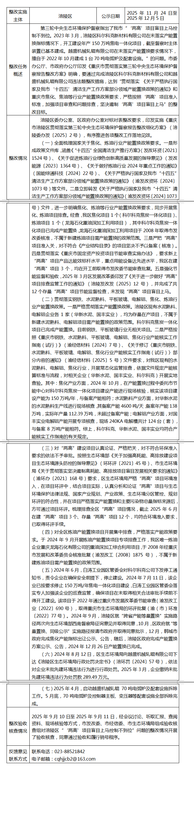 中央生态环境保护督察整改验收销号公示表(“两高”项目盲目上马控制不到位问题)
